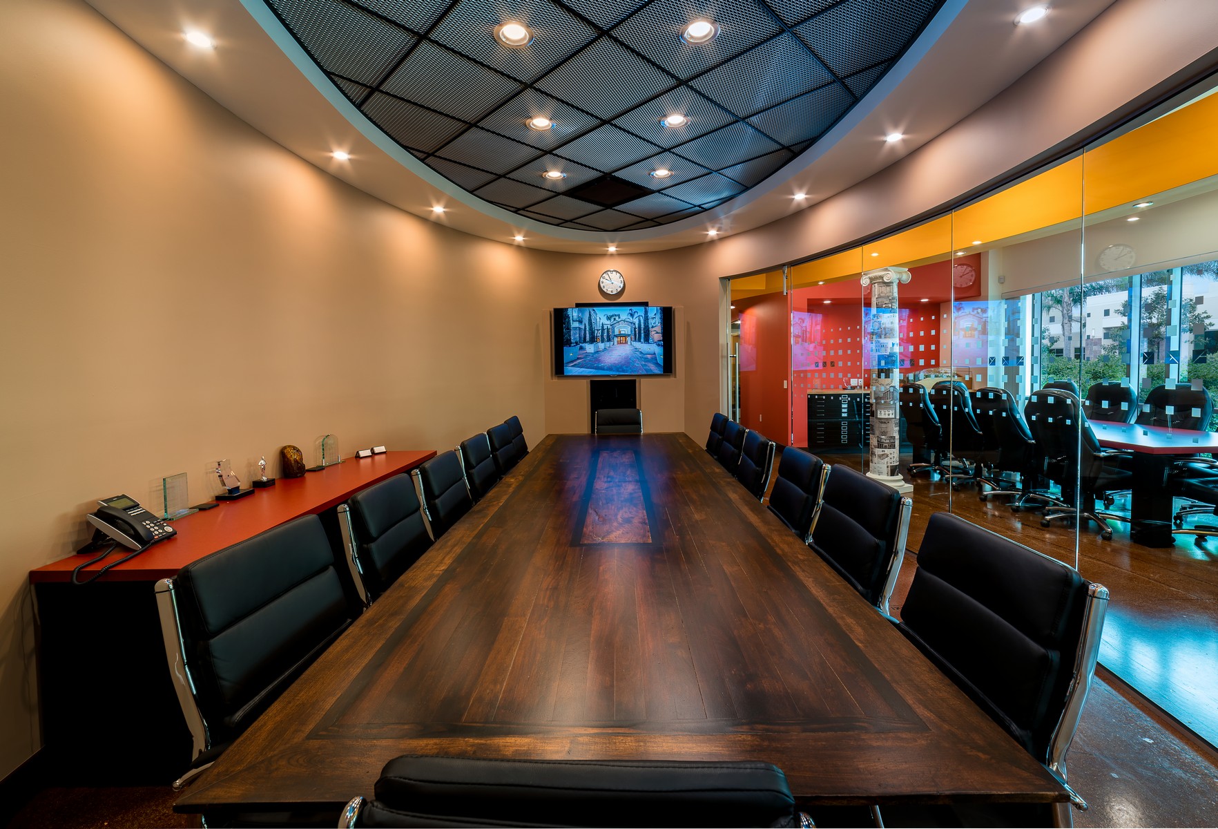 The new layout is anchored by a central oval conference room, a sculptural centerpiece enclosed in transparent glass. This elliptical form is more than just a visual focal point; its shape is acoustically tuned, enhancing surround sound for seamless collaboration. From this core, the space flows outward, with a distinctive yellow perforated wall subtly defining the hierarchy of functions and guiding movement without imposing hard boundaries.